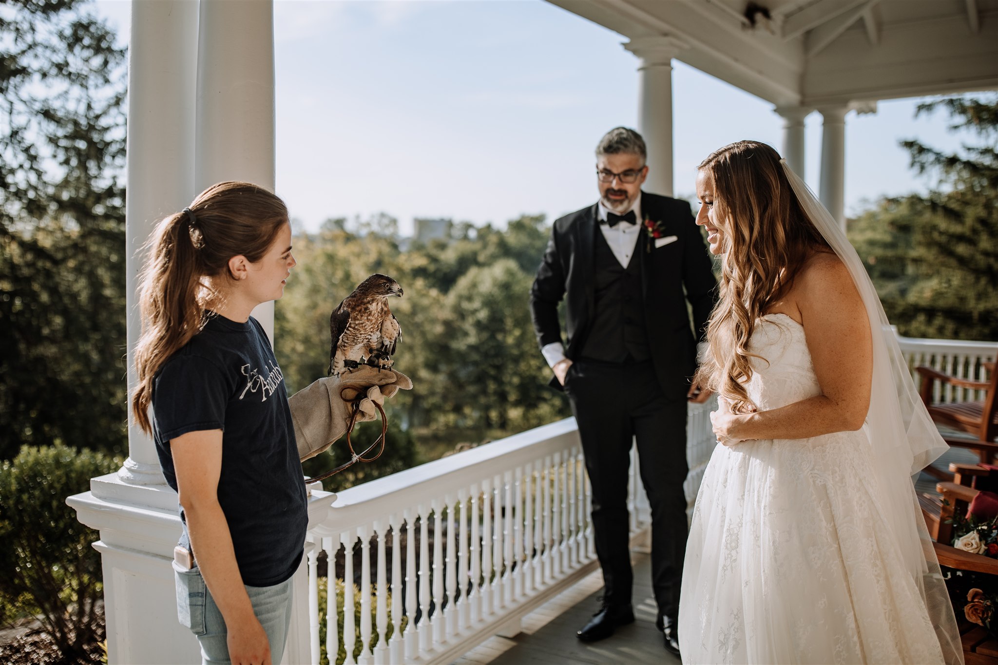 One of the most memorable parts of their wedding was the owl that made an appearance during cocktail hour – a unique and whimsical touch that fit perfectly with their nature-inspired, ethereal theme. Such a cool compliment that having a wedding at this venue can add to the day!