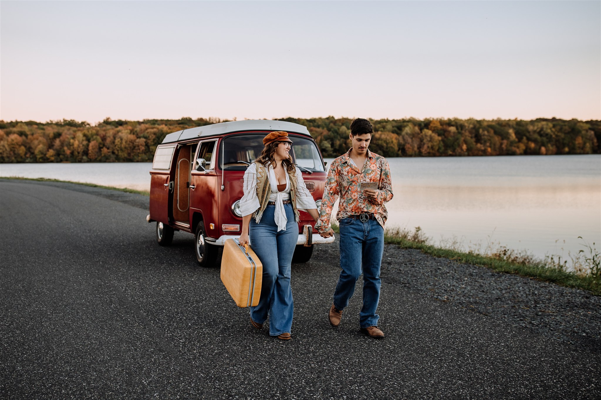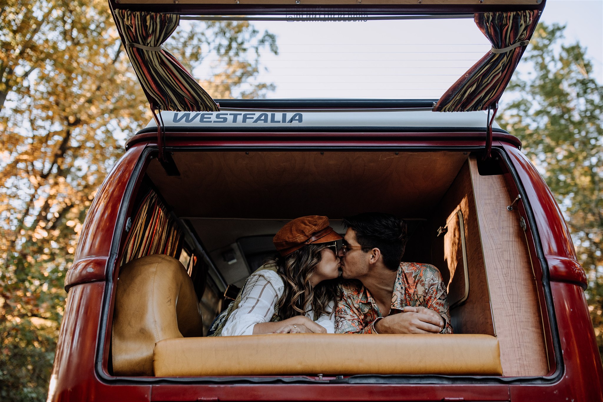 For the second half of their session, they brought out their pride and joy: a red Volkswagen Airstream campervan they renovated themselves. It’s not just a van – it’s a big part of who they are. They regularly go on camping trips and even little expos where other VW owners get together.