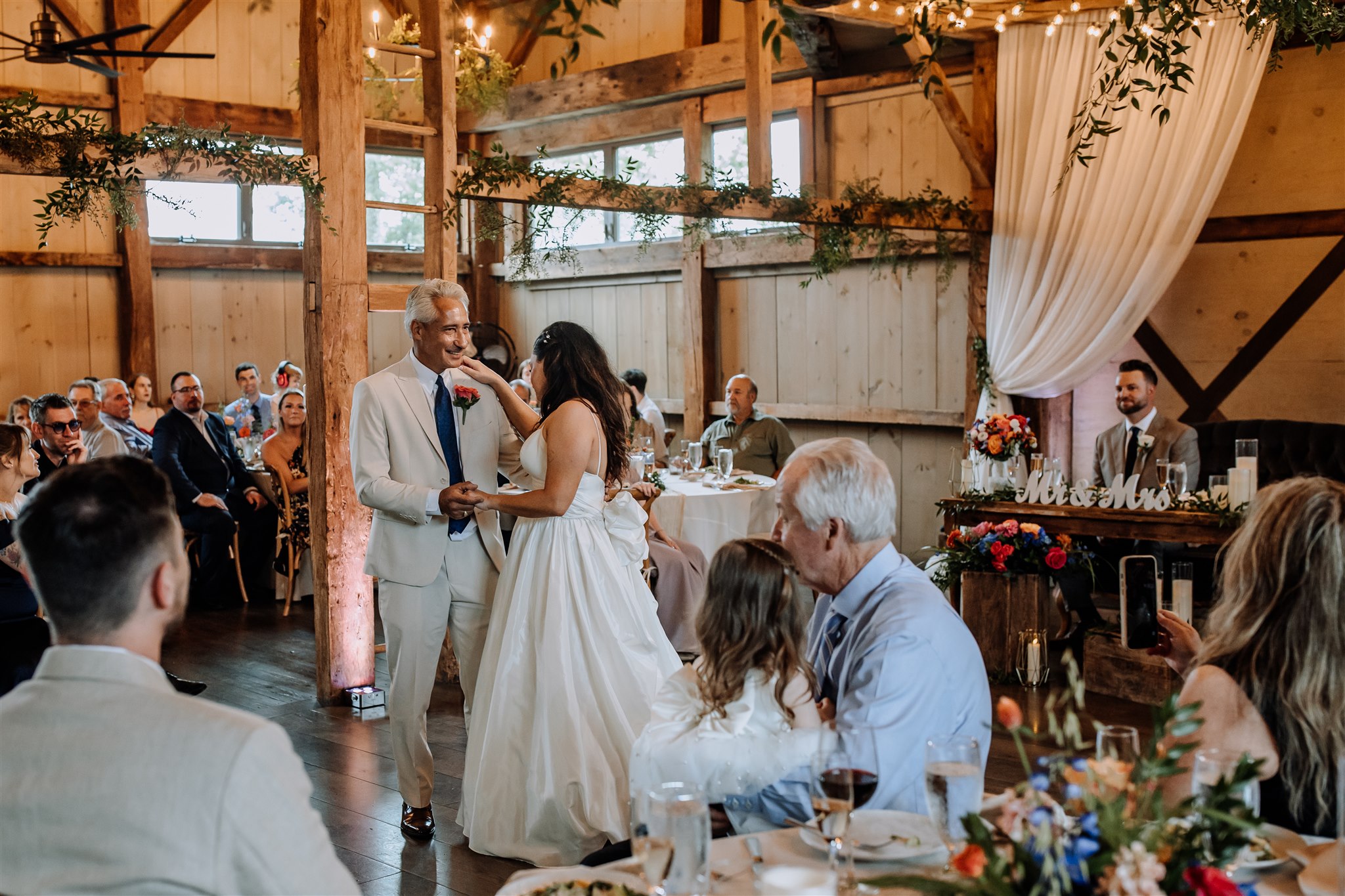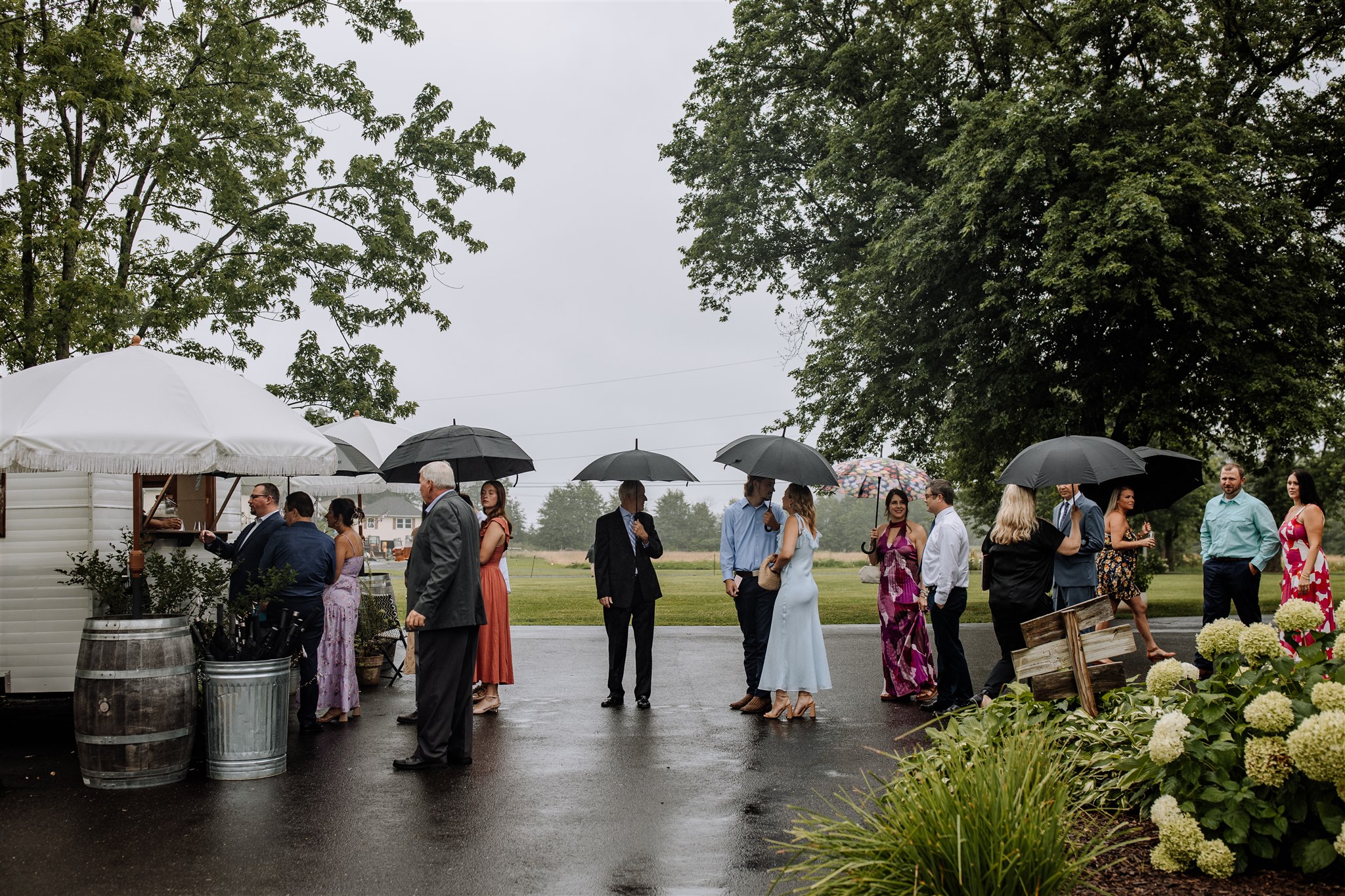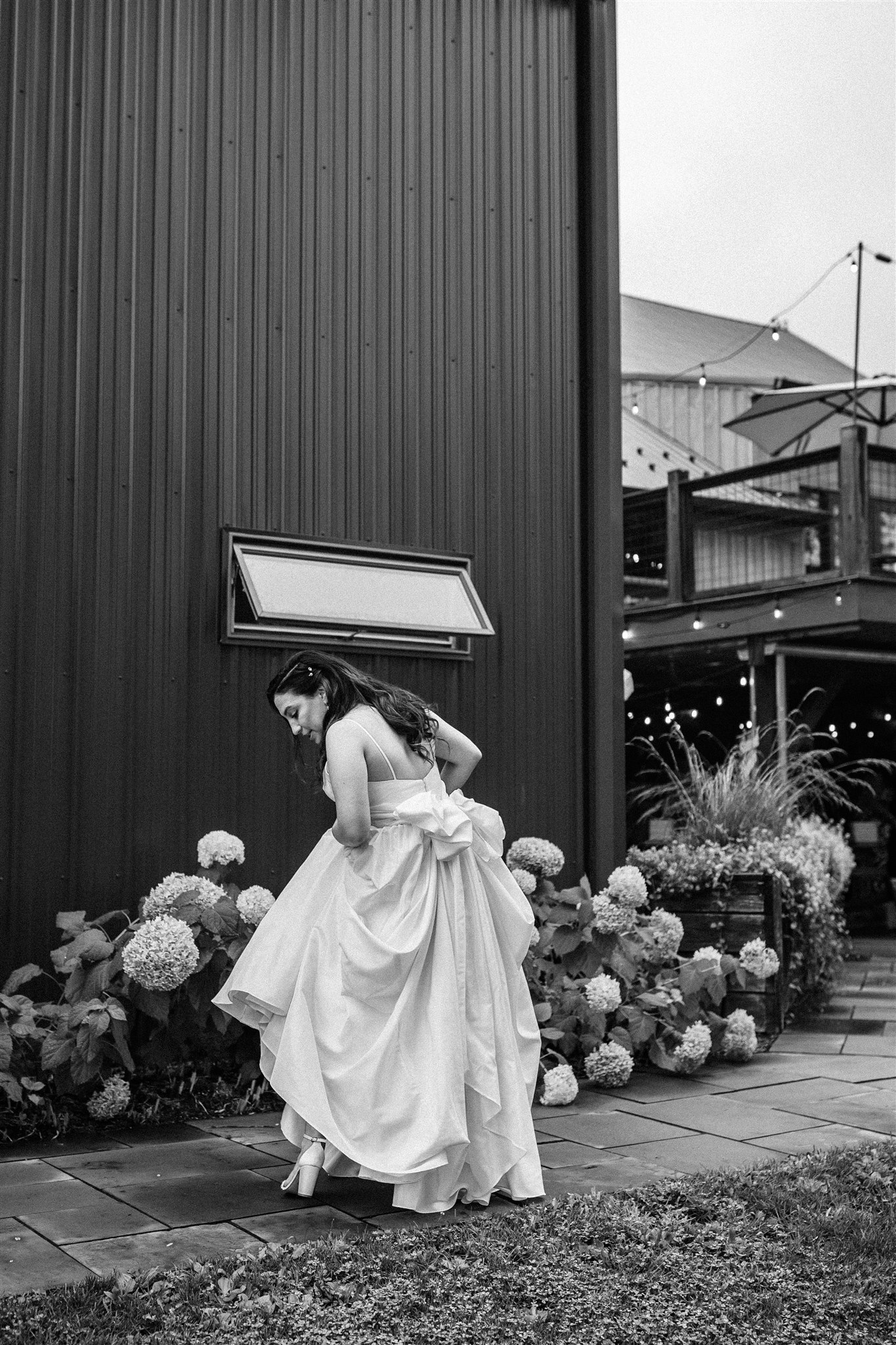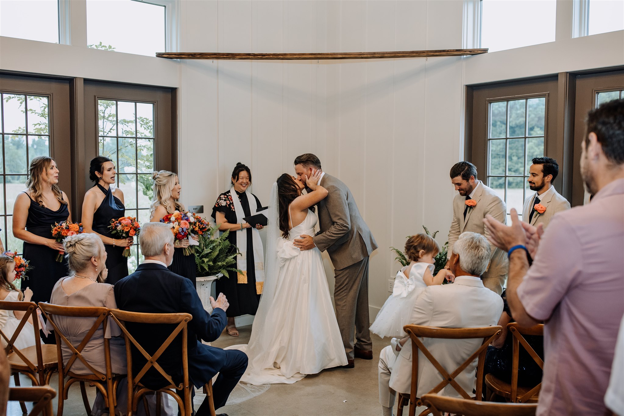The day brought a little bit of summer rain right around ceremony time, which meant their vows were moved indoors. And honestly, it couldn’t have worked out better. The indoor ceremony space felt intimate and cozy, while guests were still able to head back outside afterward to enjoy cocktail hour once the rain passed. The flexibility of The Farm Bakery & Events really shined (as it always does), allowing the day to flow smoothly despite the weather.